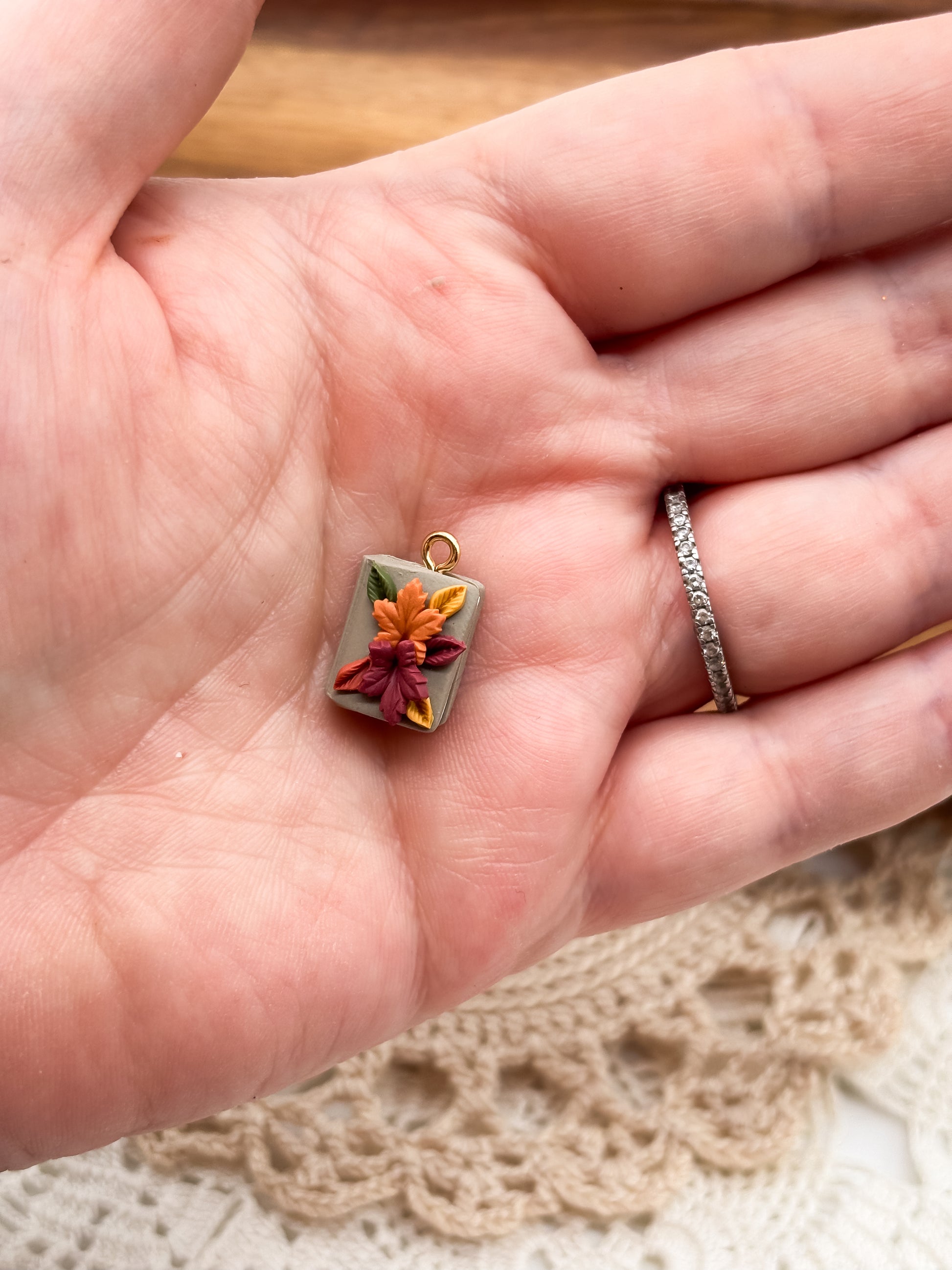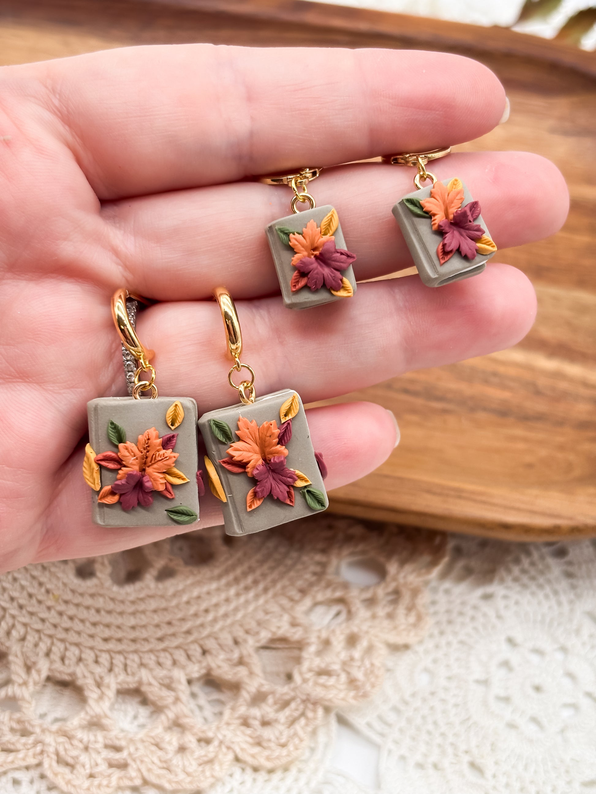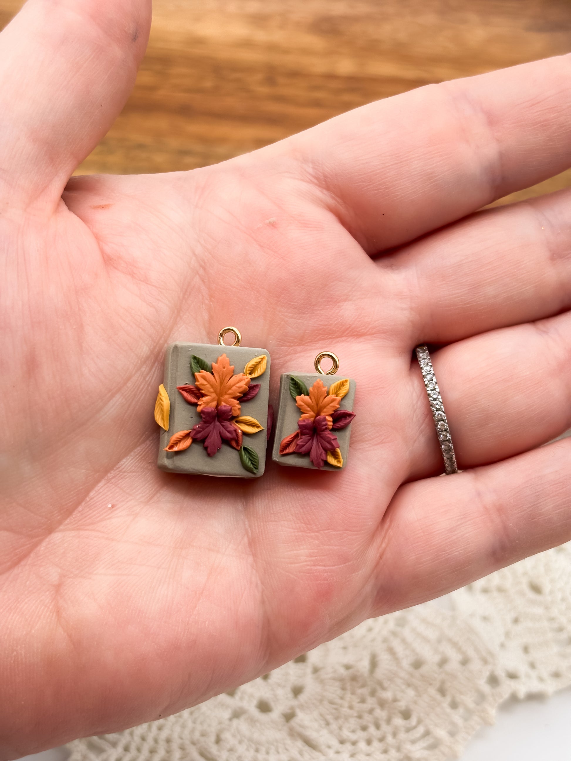 These handmade autumn-themed pieces feature single books in two sizes, each decorated with delicate autumn leaves. Versatile as earrings, a single charm, or a necklace, they offer a cozy, literary-inspired accessory perfect for celebrating the season with subtle elegance.