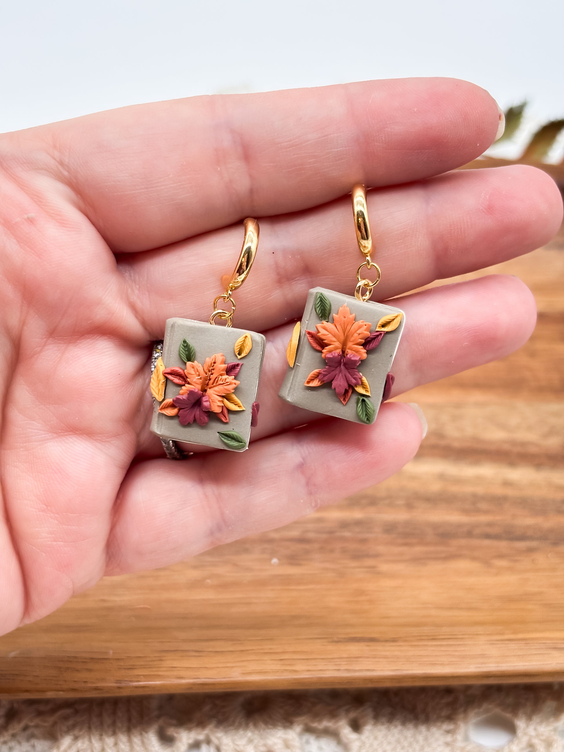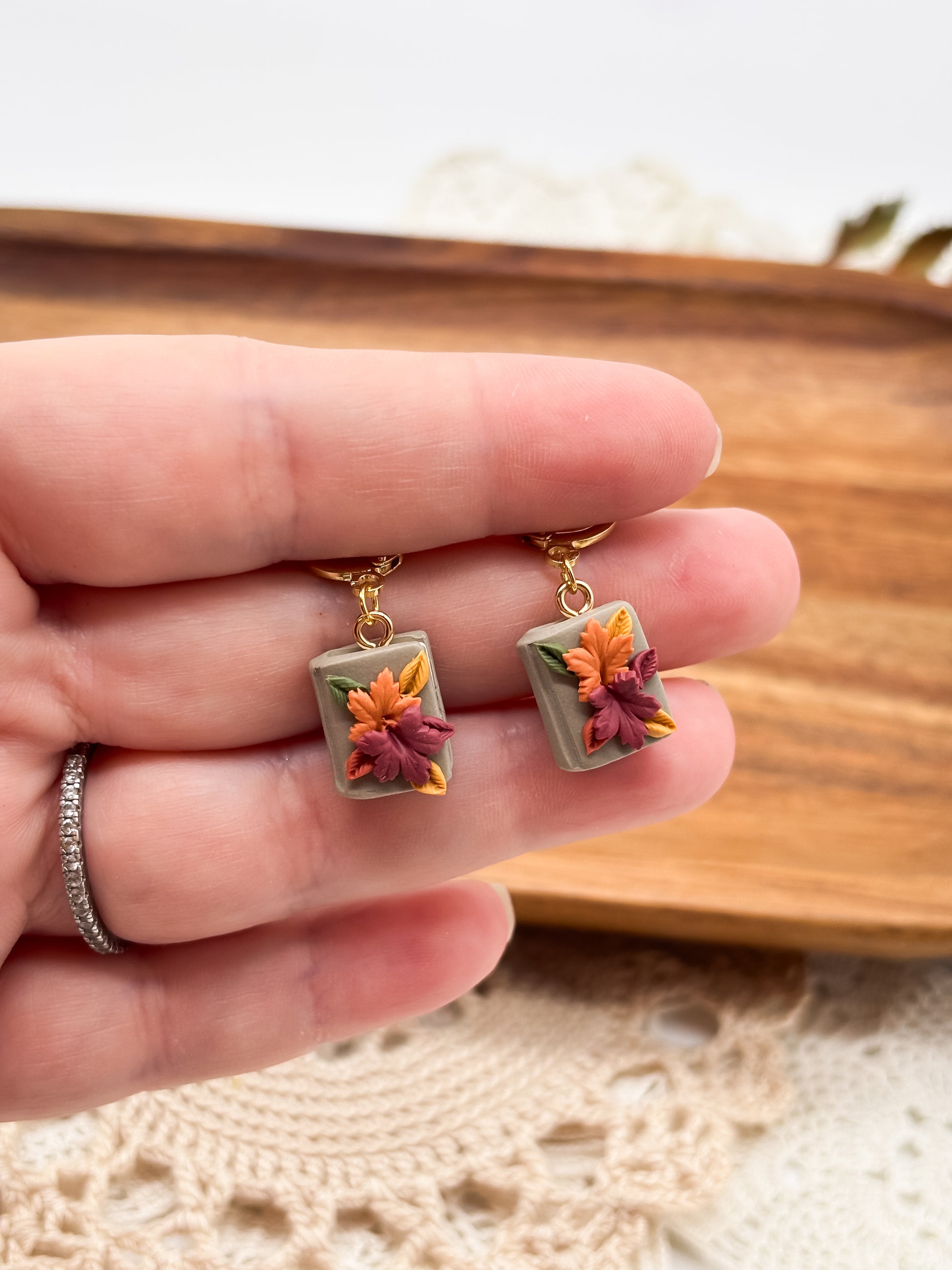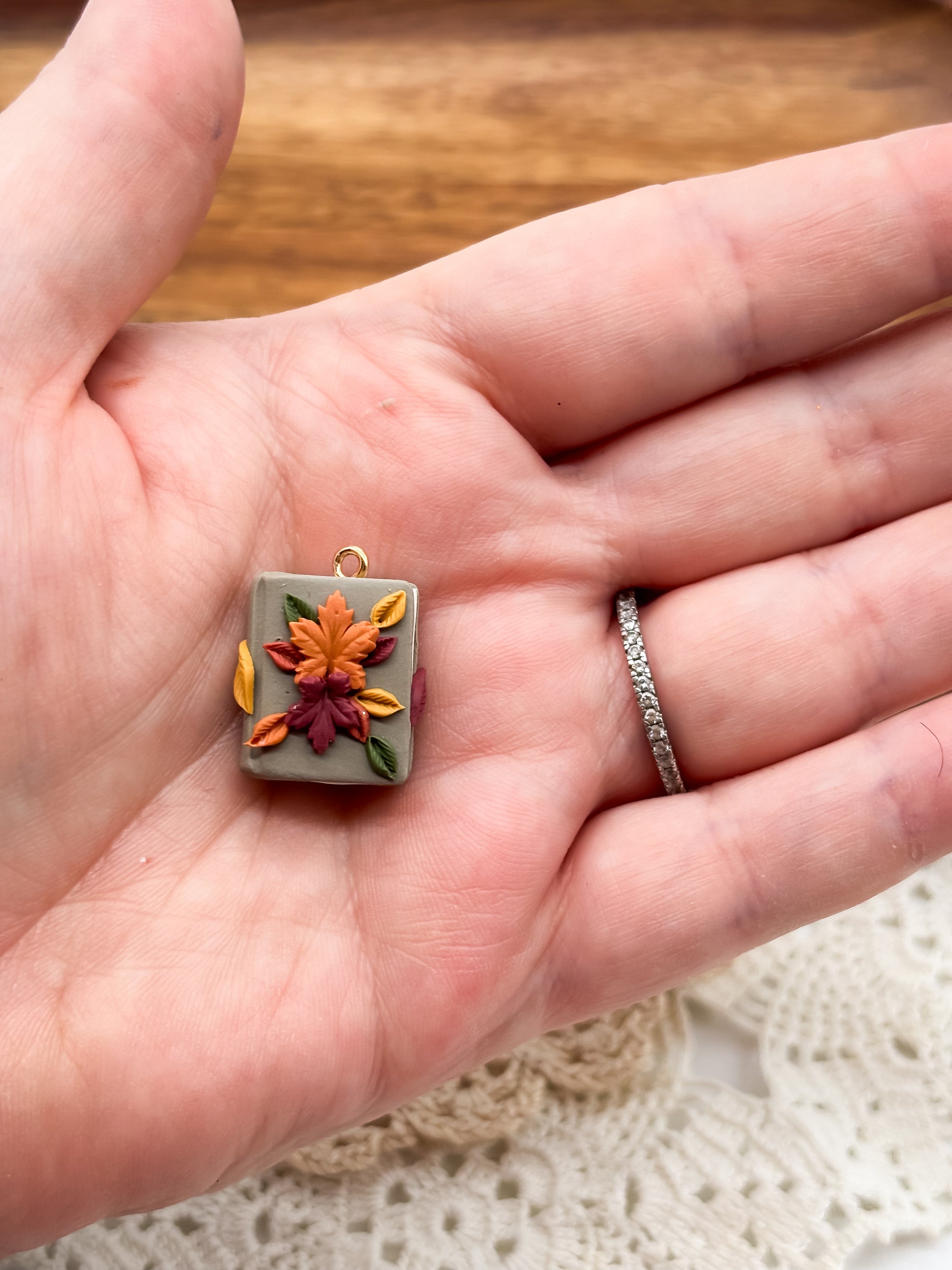 These handmade autumn-themed pieces feature single books in two sizes, each decorated with delicate autumn leaves. Versatile as earrings, a single charm, or a necklace, they offer a cozy, literary-inspired accessory perfect for celebrating the season with subtle elegance.