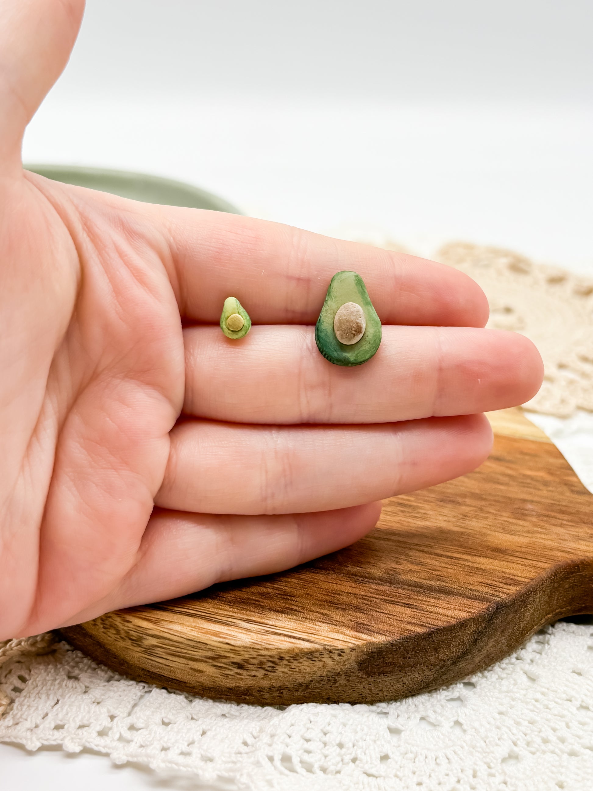 Add a cute touch to your outfit with our avocado studs! Made from polymer clay, these studs come in two sizes: regular and tiny. Perfect for any avocado lover, these earrings are a fun and unique addition to any jewelry collection.