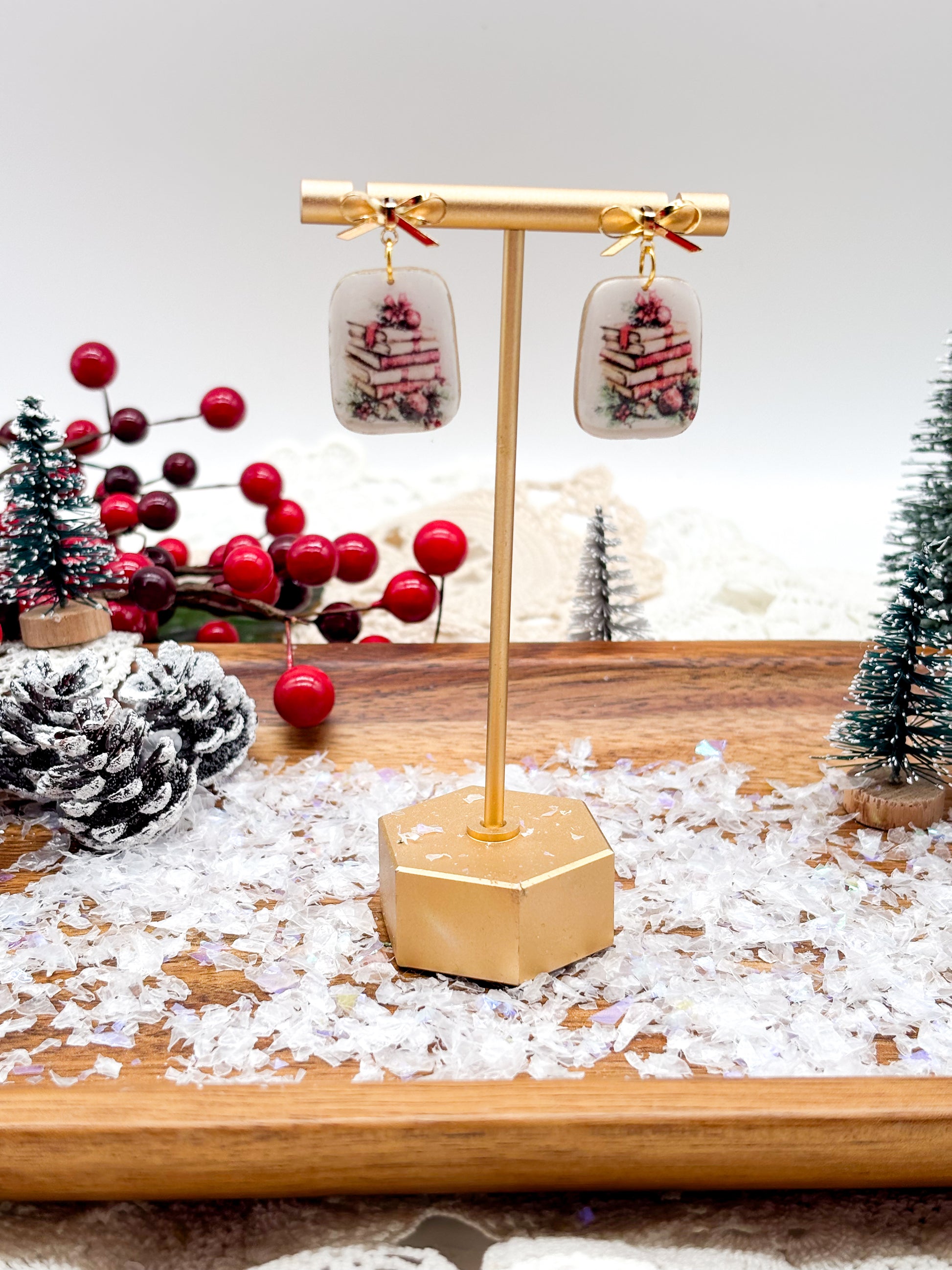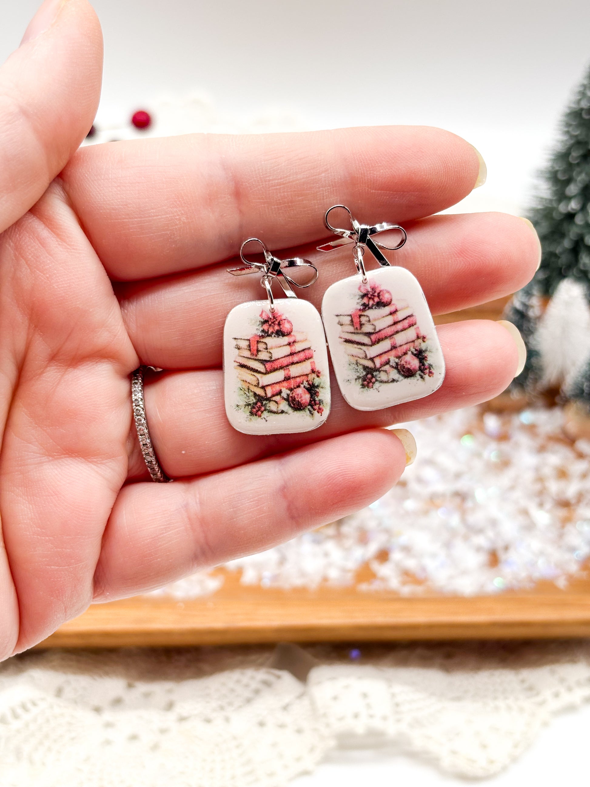 These charming handmade polymer clay earrings celebrate the joy of reading with a delightful book stack design. Each pair features a miniature stack of colorful books topped with an elegant gold or silver bow post, combining literary charm with sophisticated style. Crafted with care from quality polymer clay, these lightweight earrings are perfect for book lovers who appreciate wearable art that sparks conversation. Whether you're heading to book club or simply want to showcase your love of literature, these playful yet polished dangles add a touch of whimsy to any outfit.