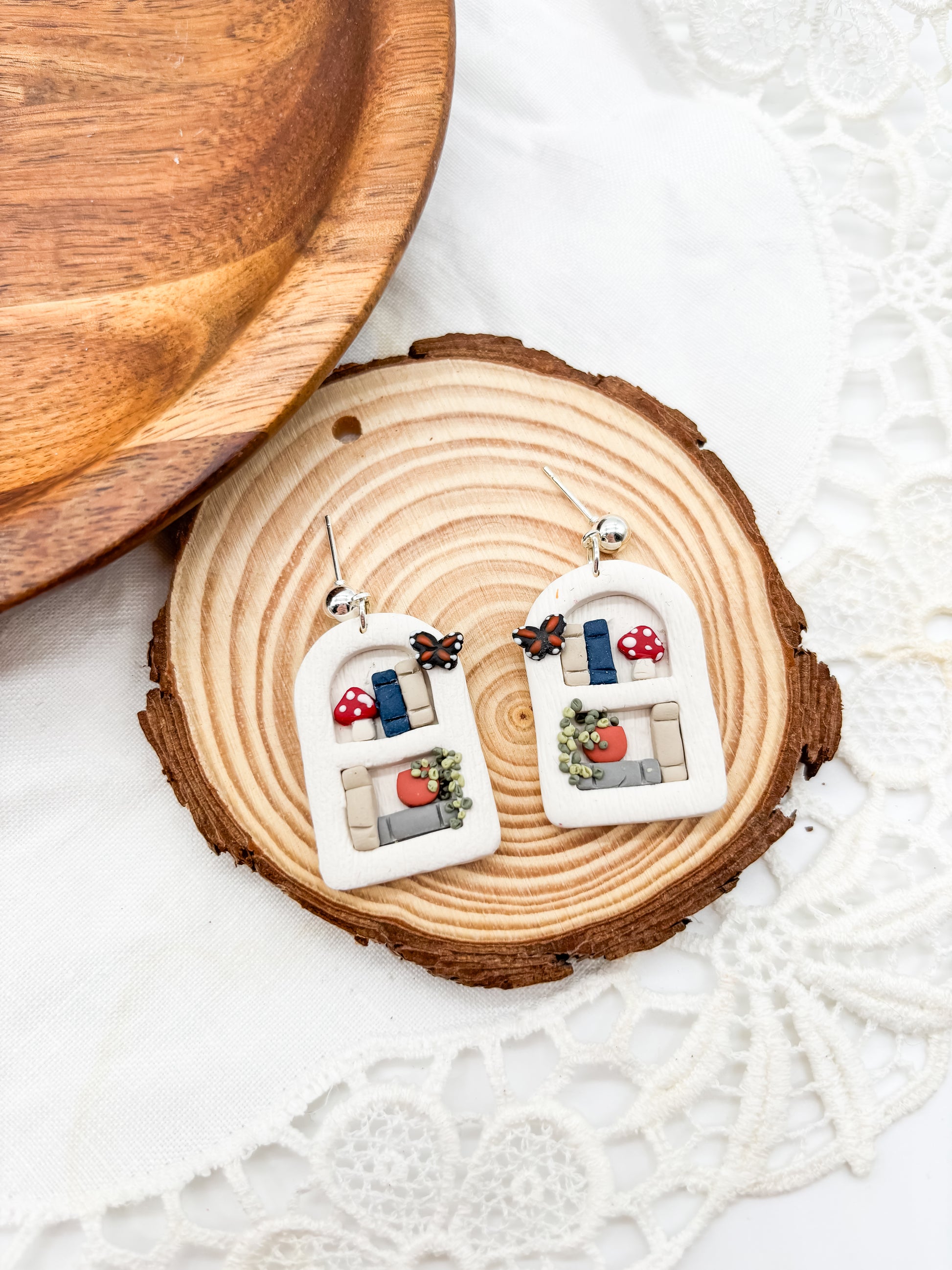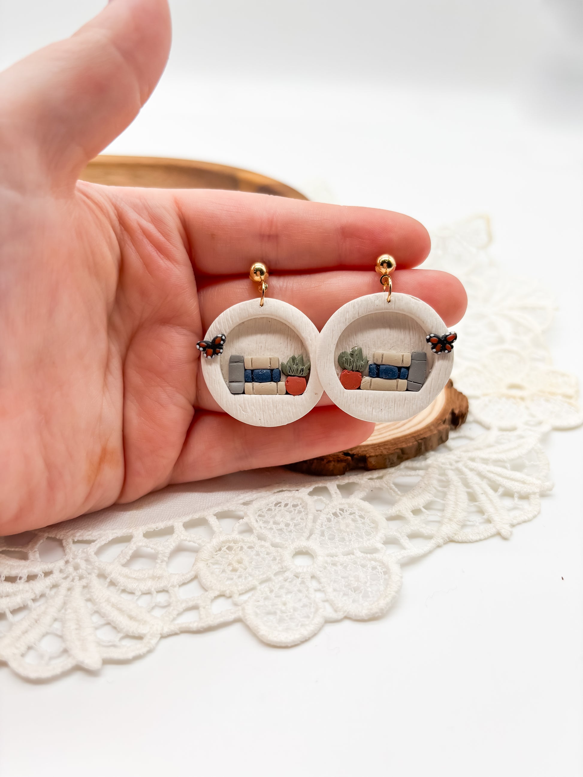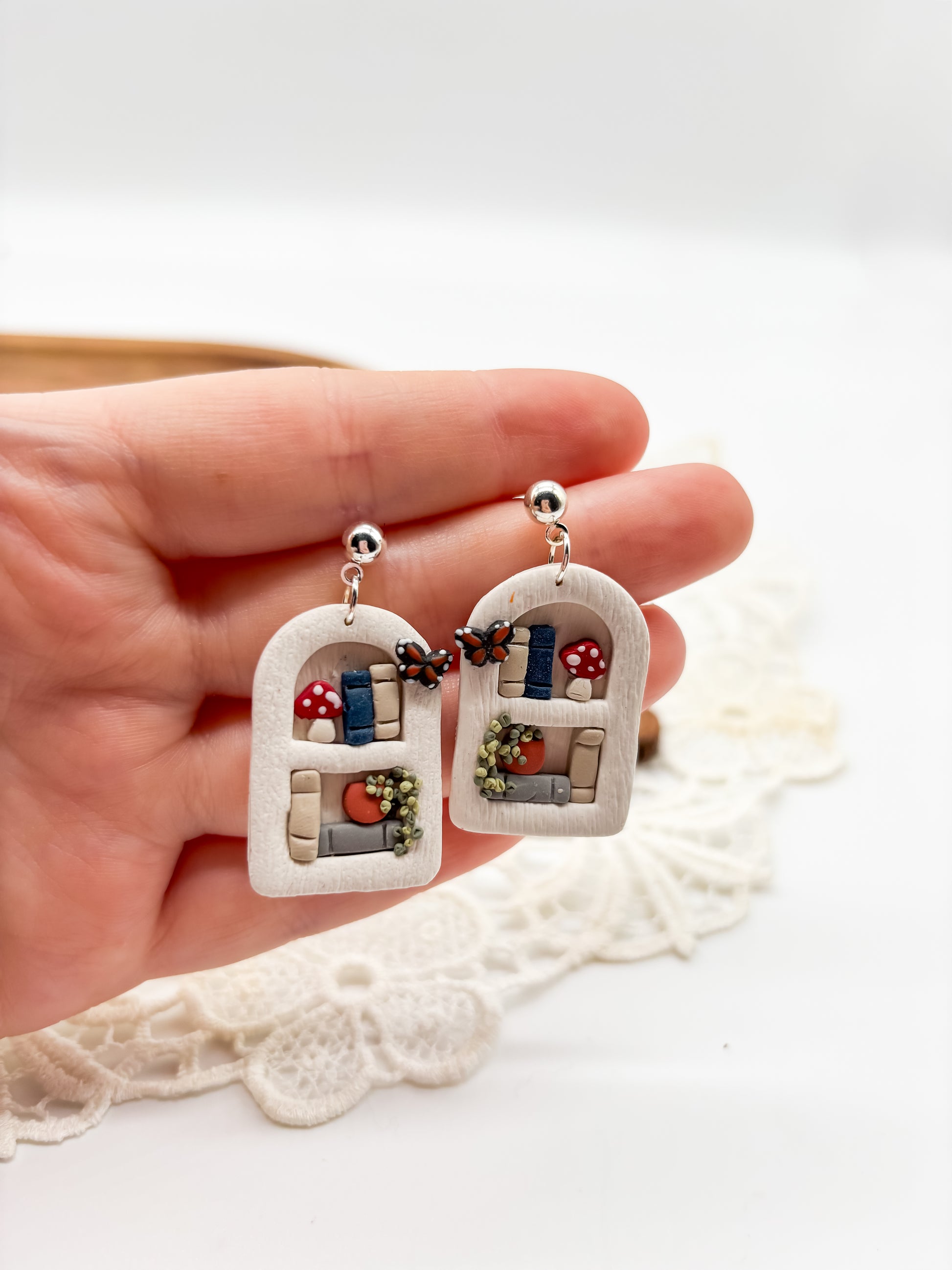 These polymer clay white bookshelf earrings adding a touch of whimsy to any outfit. The lightweight design ensures a comfortable wear, making them the perfect addition to your jewelry collection. Elevate your style with these cute dangles.