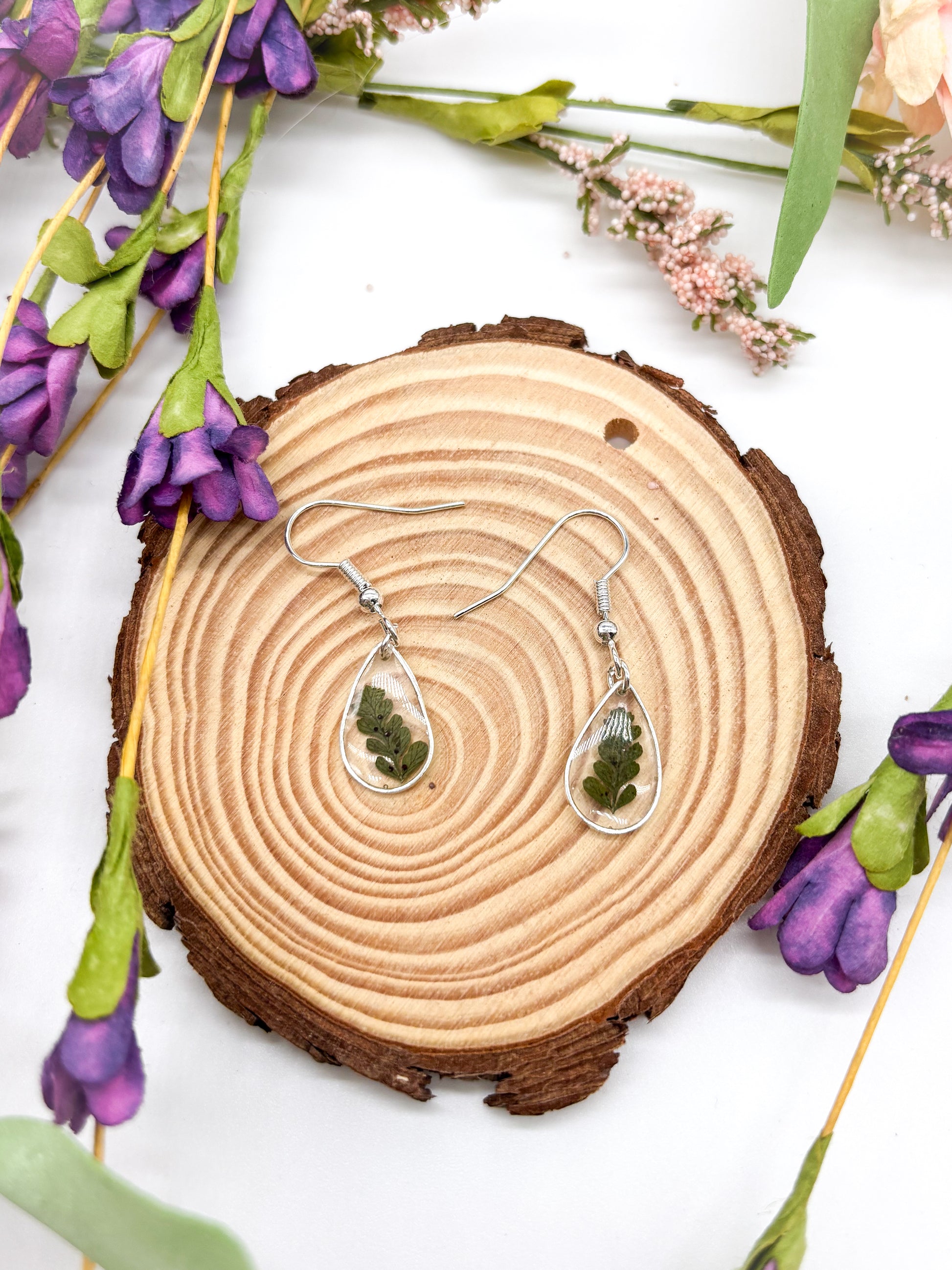 These cute teardrop dangle earrings feature intricate fern designs and come in your choice of elegant gold or sleek silver. With french hooks for easy wearing, they add a touch of nature-inspired sophistication to any outfit.