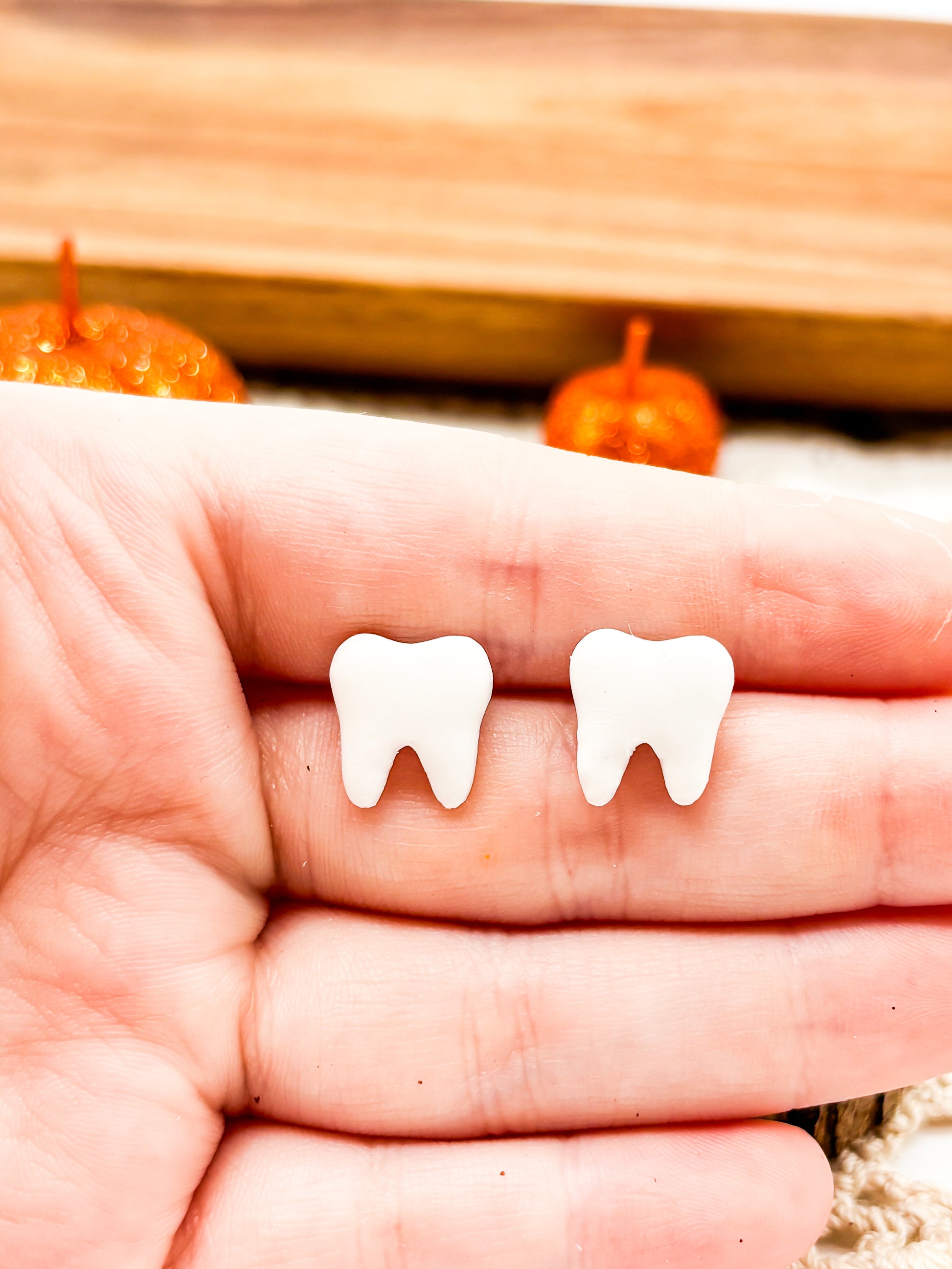 Add a fun touch to your outfit with these cute tooth stud earrings. Made with polymer clay, they are perfect for Halloween or for those in the dentistry field. Show off your love for all things teeth with these unique earrings.