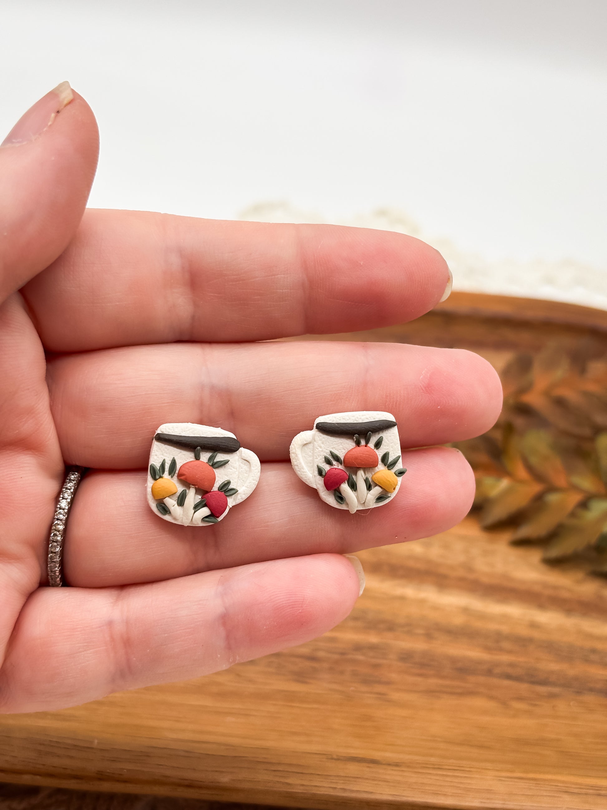These charming vintage-inspired mushroom mug studs bring a touch of whimsy to your accessory collection. Crafted from durable polymer clay and mounted on stainless steel studs, they combine handmade artistry with lasting quality. Their unique design is perfect for those who appreciate nature-inspired, subtle yet playful jewelry.